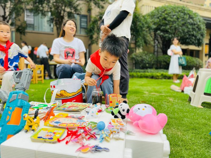 当天,在东兴区邦泰•国际社区小区,小朋友们早早就开始搭起摊位,摆出了他们精心挑选的商品,从书籍、家居用品到手工艺品和玩具,应有尽有。随着时间推移,越来越多的人加入其中,欢笑声、叫卖声以及讨价声此起彼伏,现场热闹非凡。“孩子在这次活动中让自家闲置的物品再一次发挥了作用,分享了‘小’玩具,收获了‘大’快乐,也让他们学到了不少新的知识,很有意义。”家长巩娇娇说。