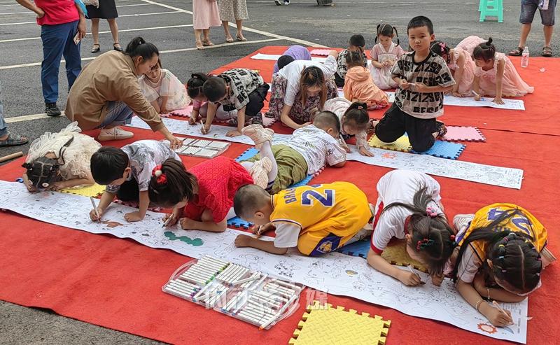 在游戏“珠行万里”中,大家团结协作,默契配合,小心翼翼地传递着珠子。在“绘画长卷”中,孩子们通过集体绘画的形式,感受创作的乐趣。