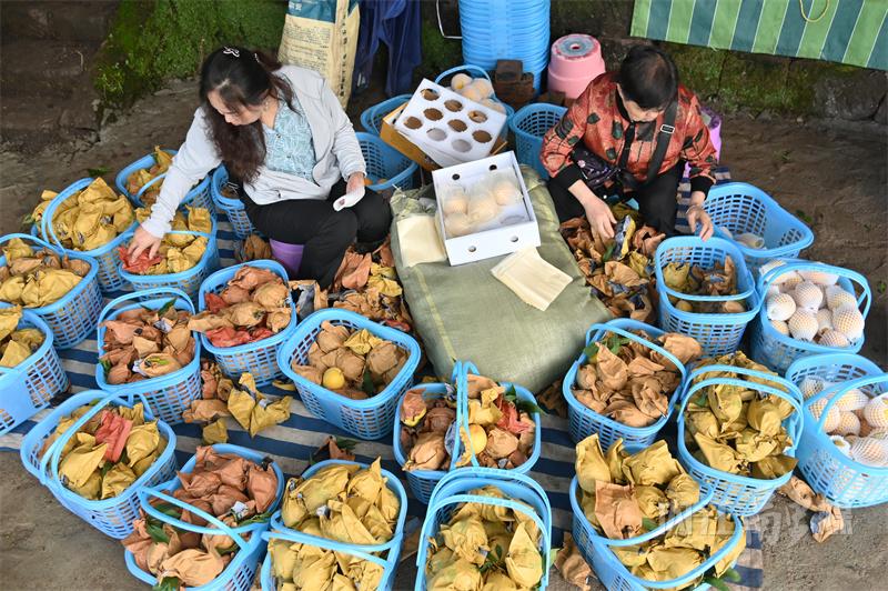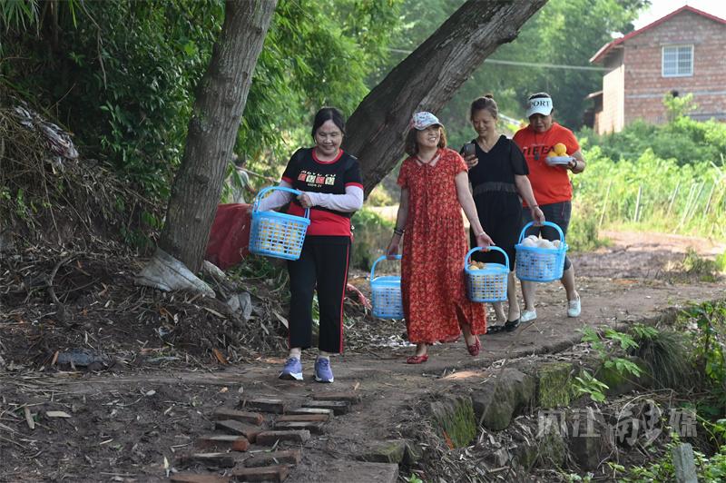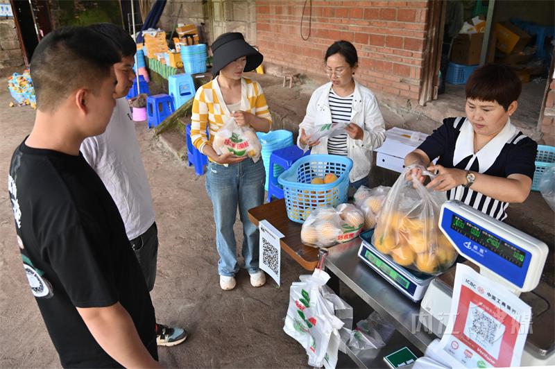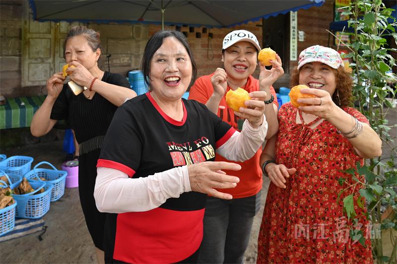 “巴适得很!这里的黄桃又大又甜,而且水分足,我们每年都来赏花摘桃,今天买了30多斤,回去还要送朋友。”游客许蓉和几位姐妹一边品尝黄桃一边说。
