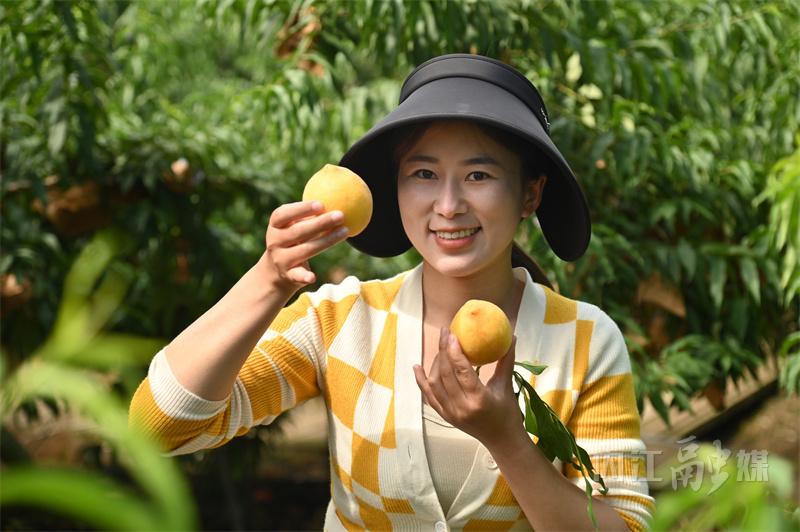 “我们农场有30多亩黄桃,品种是‘黄金蜜1号’,目前处于丰产期,个大味甜、口感好。”基地负责人杨静表示,预计今年产量约3万斤,产值30多万元,他们提供线上订购服务和同城配送服务,欢迎顾客亲自前往果园采摘,体验采摘乐趣。