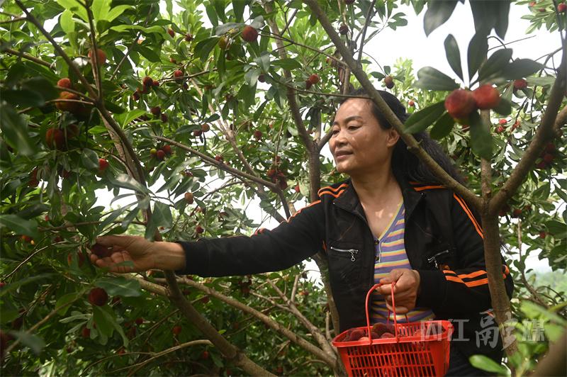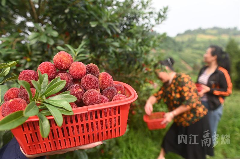 6月6日,在内江市东兴区椑木镇中山村,游客在杨梅种植基地内体验采摘乐趣。