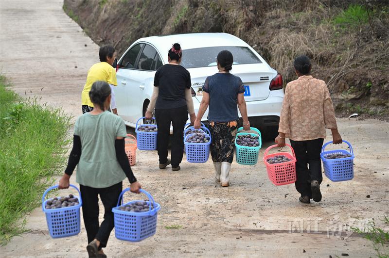 眼下,东兴区礼芬种植专业合作社300余亩五月脆桃、凤凰李成熟,果农在果园里穿梭,忙着采摘、装筐、转运。