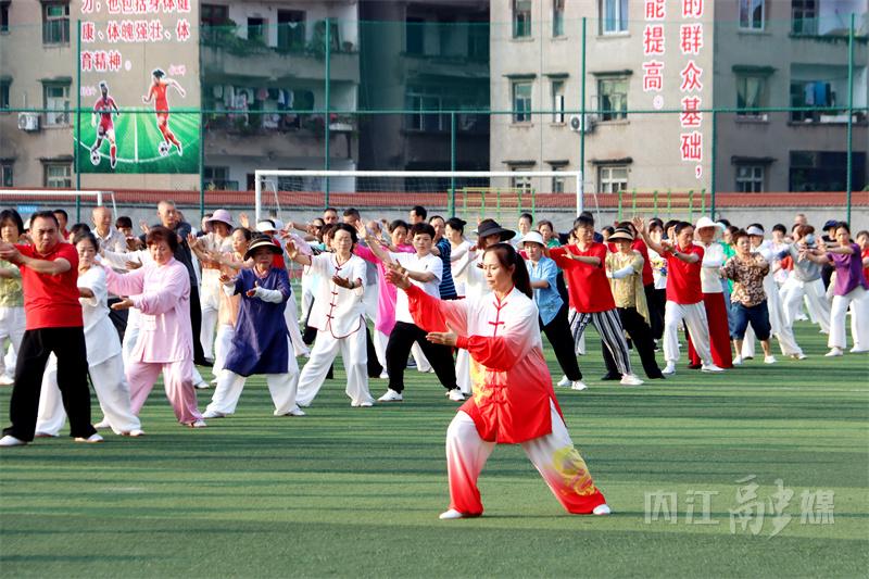 6月16日,记者前往内江市资中县体育场看到,群众在教练的指导下学习杨氏太极拳。