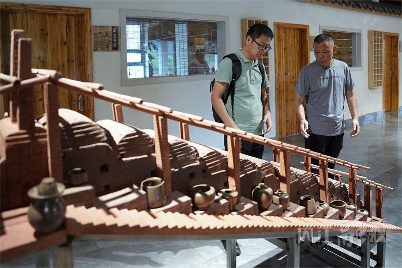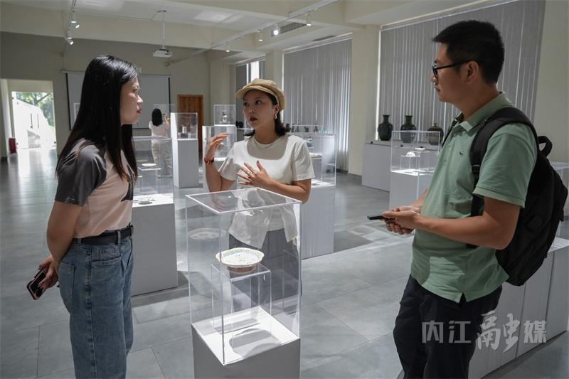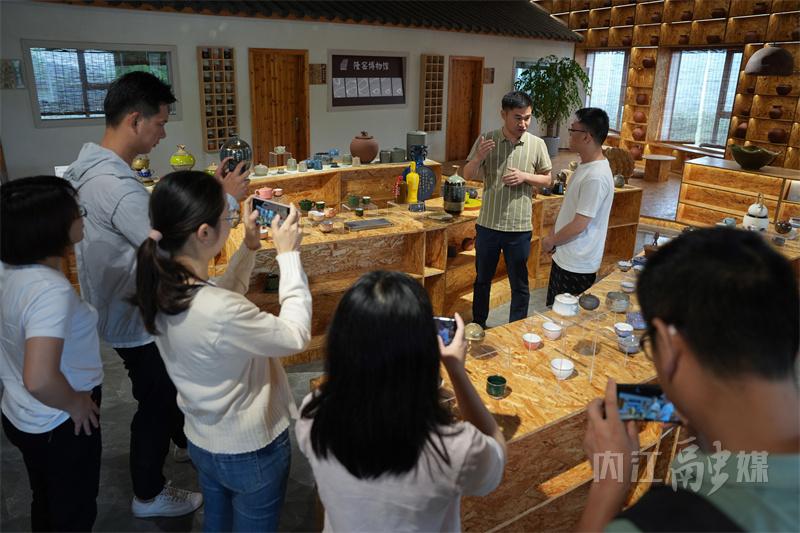 当天上午虽然天公不作美,但采访团一行兴致勃勃,在隆昌土陶历史文物展示馆、非遗土陶制造体验区以及龙坡窑遗址等区域,了解土陶的前世今生,采访土陶非遗技艺传承情况。