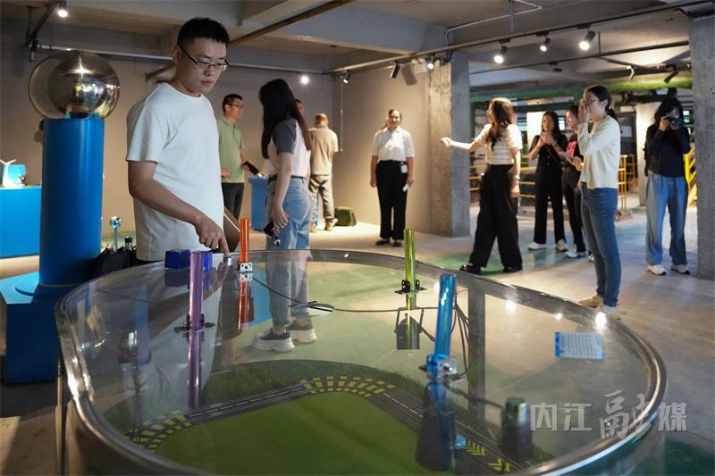 24个互动体验装置、7间研学教室、10面互动投影墙……当日下午,采访团一行深入位于内江市威远县连界镇的川威工业研学旅行营地,走进“工业研学营区、运动营区、生态营区”三大研学营区,“沉浸式”探访“工业+文旅+研学”新业态文旅融合发展情况。