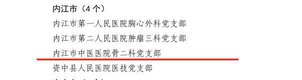 同时,内江市中医医院儿童骨科党支部(原骨二科党支部)获评“四川省标杆党支部”,继门诊党支部获评后的又一省级标杆党支部。