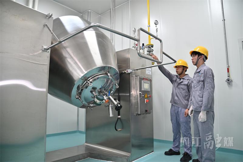 7月8日,记者在内江经开区泽宇药业原料药及制剂生产项目建设现场看到,十余栋灰白色建筑巍然矗立。生产车间内,工作人员正在调试设备,为项目投产做最后冲刺。