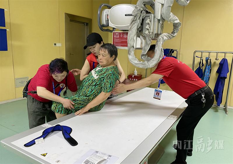 “王婆婆,您慢一点,我抱您上车。”7月6日早上七点多,内江市爱心志愿者协会助老组志愿者张顺碧、李现林、邓延聪来到市中区新华路东三巷,将因车祸导致骨折的81岁的王道美老人送到内江市中医医院(新区)复查。