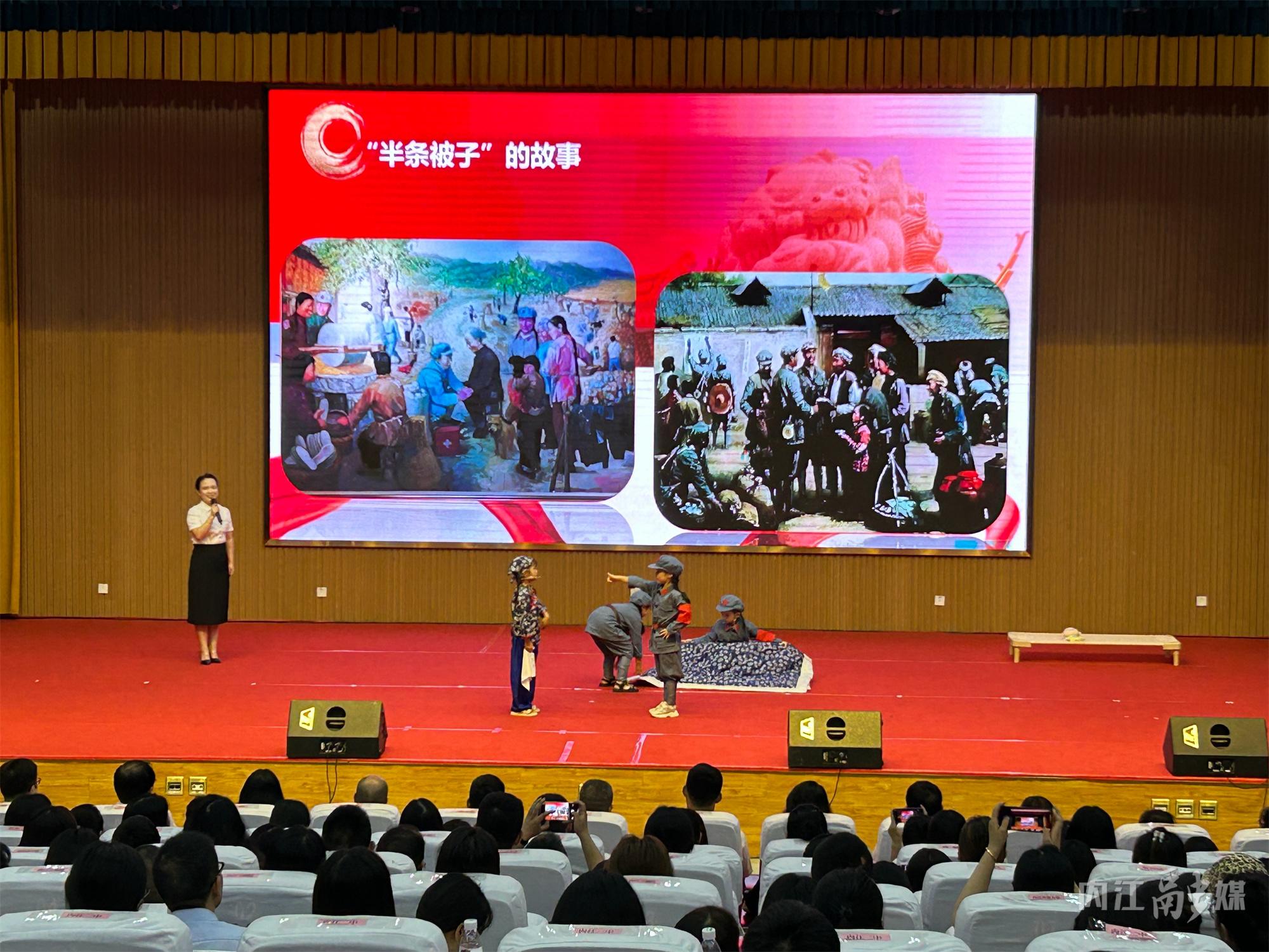 活动现场,《半条被子映初心 我辈砥砺再前行》《红烛不灭 薪火永传》《你的样子》《以吾辈之青春 以奋斗诠释担当》等红色党课轮番上演,精彩不断。比如,4号选手聚焦践行习近平总书记关于新时代的中国青年要以实现中华民族伟大复兴为己任的重要指示,讲述个人追逐光、靠近光、成为光,并以微光照亮学生前行路程的感人历程;2号、7号选手立足学校实际,用身边人、身边事,说身边理,以小见大,达到润物细无声的效果;8号、10号选手采取情景式演绎,灵活运用经典影视资料,极大增强了党课的感染力;9号选手用三个党员的故事,以点带面讲述教育者落实立德树人根本任务的宏伟画卷,激发听众对做“四有”好老师的强烈共鸣……他们用小环境分析大形势,用身边事说明大政策,用贴心话讲清大道理,让听众沉浸式体验、互动式参与,激发工作热情,凝聚奋斗合力。