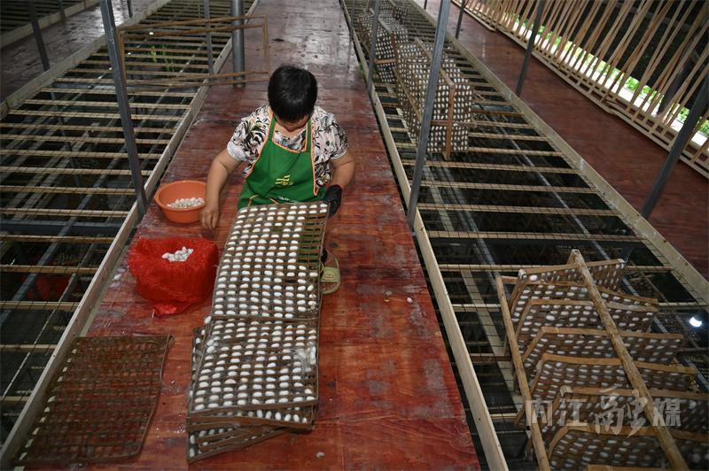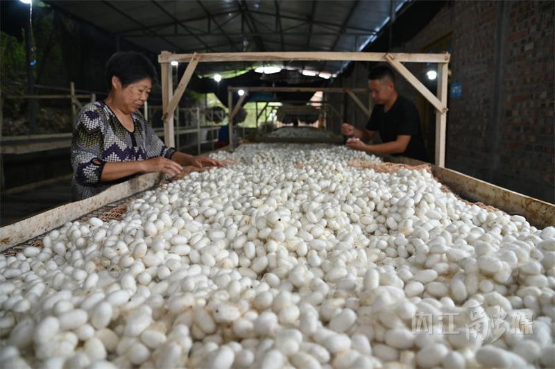 眼下正值首批夏蚕丰收时节,内江蚕农有序采摘新鲜蚕茧供应市场。