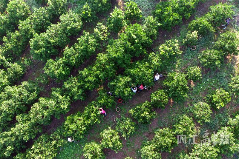 7月12日,内江市东兴区七星村枳壳基地一派繁忙的丰收景象,当地种植的4500余亩枳壳迎来采摘季,村民们穿梭于翠绿的果林间,忙碌的身影构成一幅生动的乡村丰收画卷。