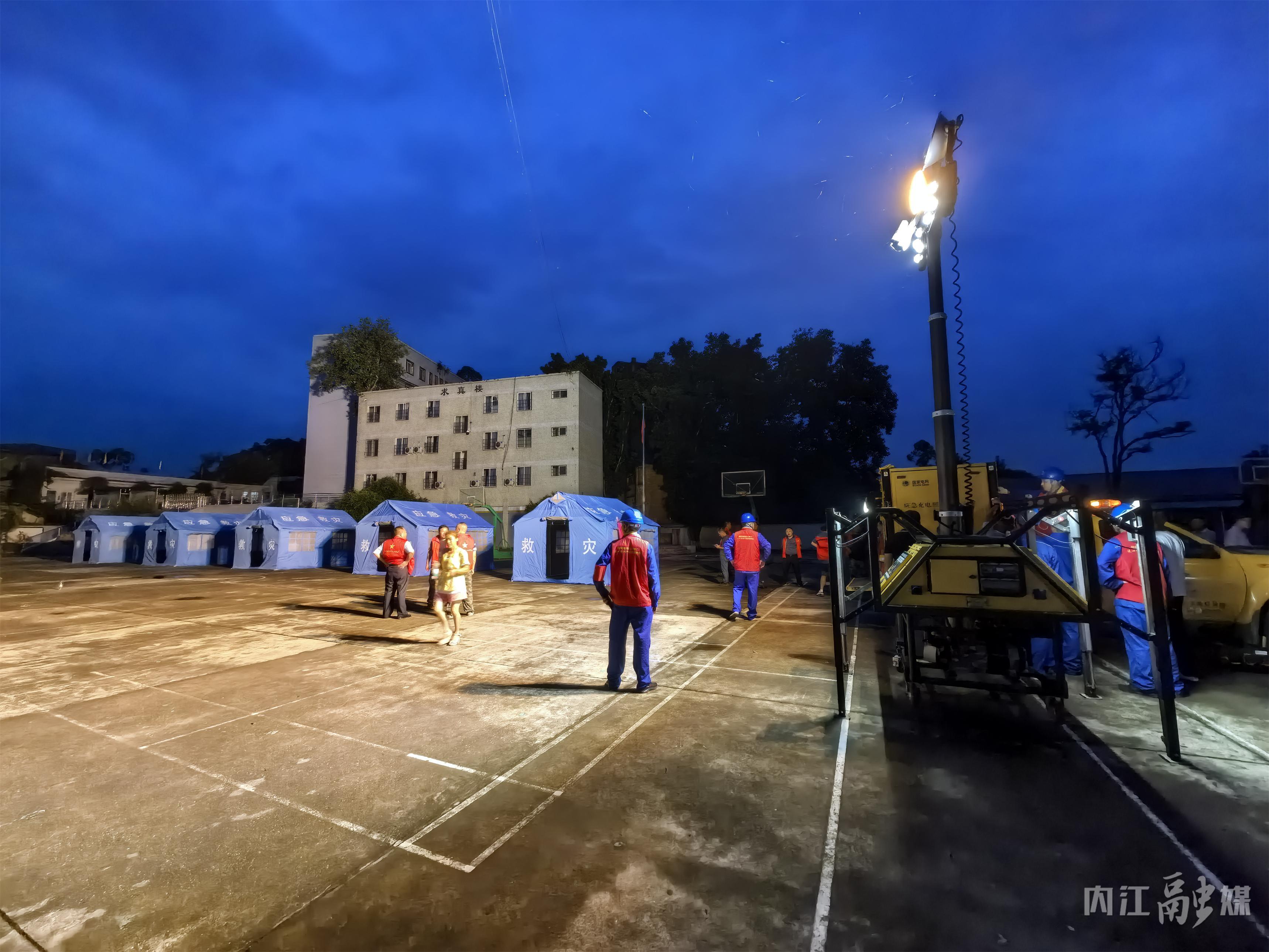 “有电了,终于可以充电了……”在东兴区田家镇中心校安置点,国网内江东兴供电公司农村电力“三为”志愿服务队迅速为当地受灾群众接通应急照明电源,于受灾当晚点亮了安置点第一盏灯,为当地受灾群众送去光明和温暖。