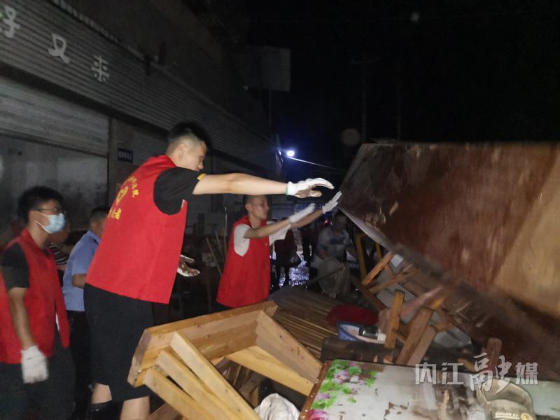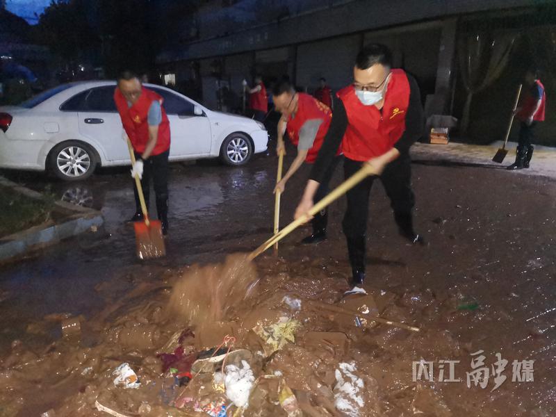 受“7·13”强降雨影响,内江市东兴区部分场镇和村庄受灾,内江市中级人民法院党员干警投身防汛救灾一线,参与夜间值守、灾后清淤、卫生防疫等工作。