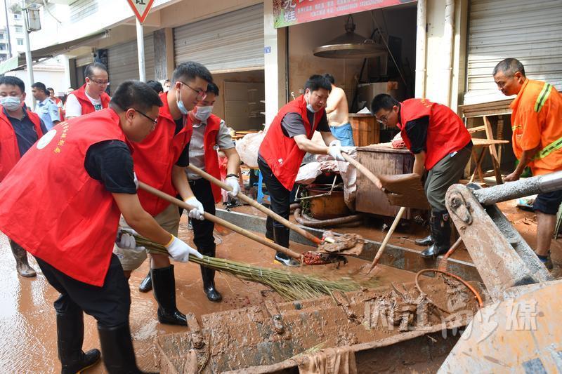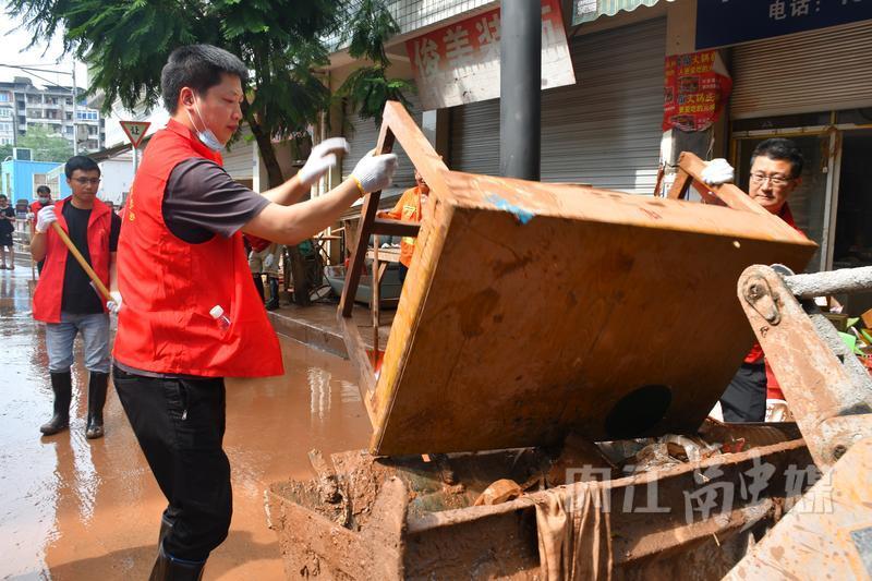 受强降雨影响,内江市东兴区部分镇(街道)出现洪涝灾害,洪水退去,大街小巷覆上一层厚厚的淤泥。7月15日17时10分,接到市直机关工委关于组织党员干部支援汛后清淤工作的任务后,市自然资源和规划局立即响应,仅用1个小时就完成人员选定、队伍集结、物资准备等工作,市自规系统40名党员干部组成的攻坚队,于18时40分迅速奔赴田家镇,帮助受灾群众尽快恢复正常生产生活秩序。
