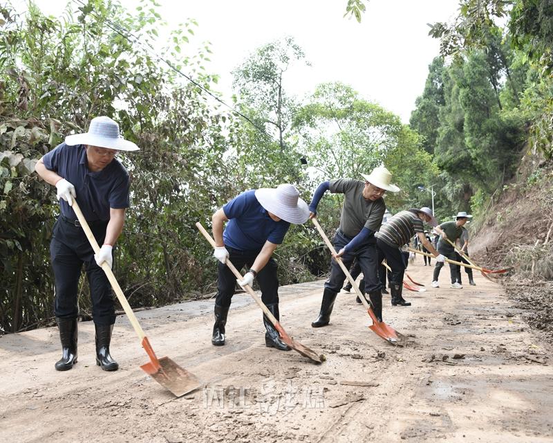 东兴区杨家镇是“7·13”暴雨洪灾受灾乡镇。市政协机关组织20余名党员干部前往杨家镇积极参与灾后清淤志愿服务活动。清淤现场,党员干部们充分发扬“不怕脏、不怕苦、不怕累”的精神,穿着雨靴、戴着手套,手持铁锹、扫帚等工具,有序清除路面淤泥和垃圾。经过1个多小时的齐心协力,大家将原本泥泞不堪的道路逐渐恢复了干净整洁的面貌,有效保障了道路正常通行和群众的出行安全。