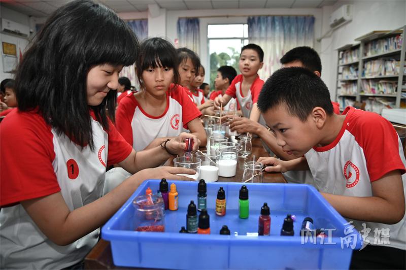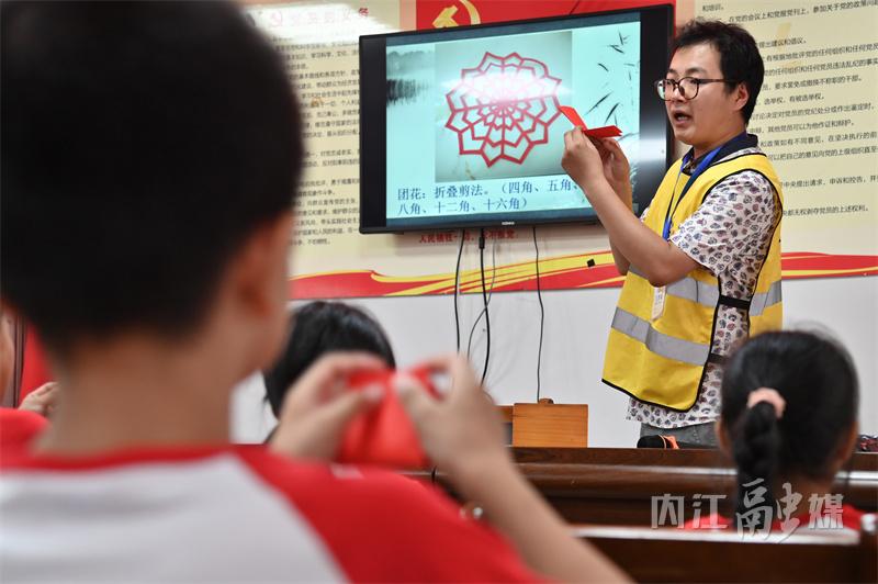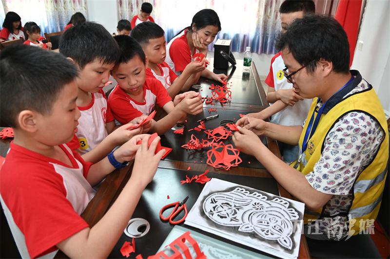 7月17日,2024年万名青少年夏令营活动走进内江市东兴区双才镇玉皇观村。40名少年儿童欢聚一堂,在研学科普、非遗剪纸、DIY扎染、彩虹蜡烛制作等丰富活动中度过暑假时光。