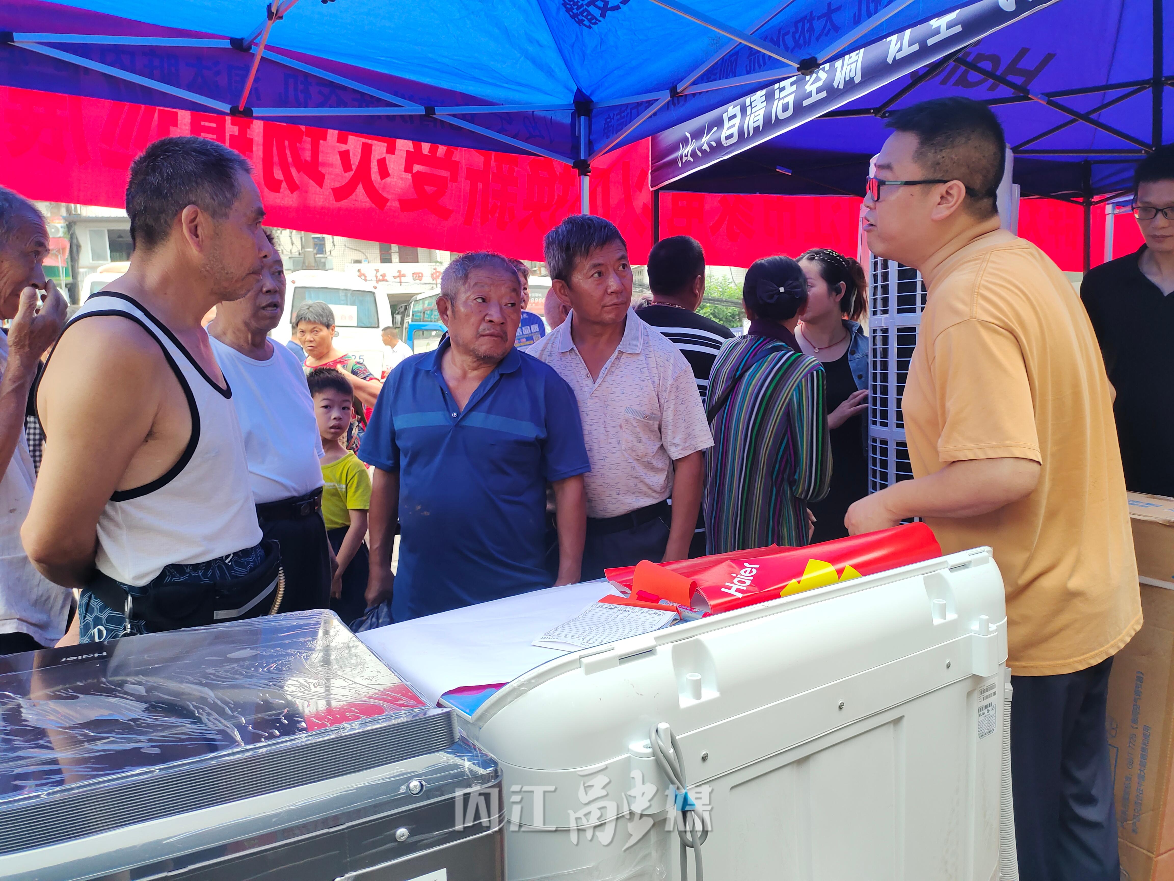 7月18日,是东兴区白合镇的赶集日,内江市家电以旧换新受灾场镇巡展活动也在此开启。