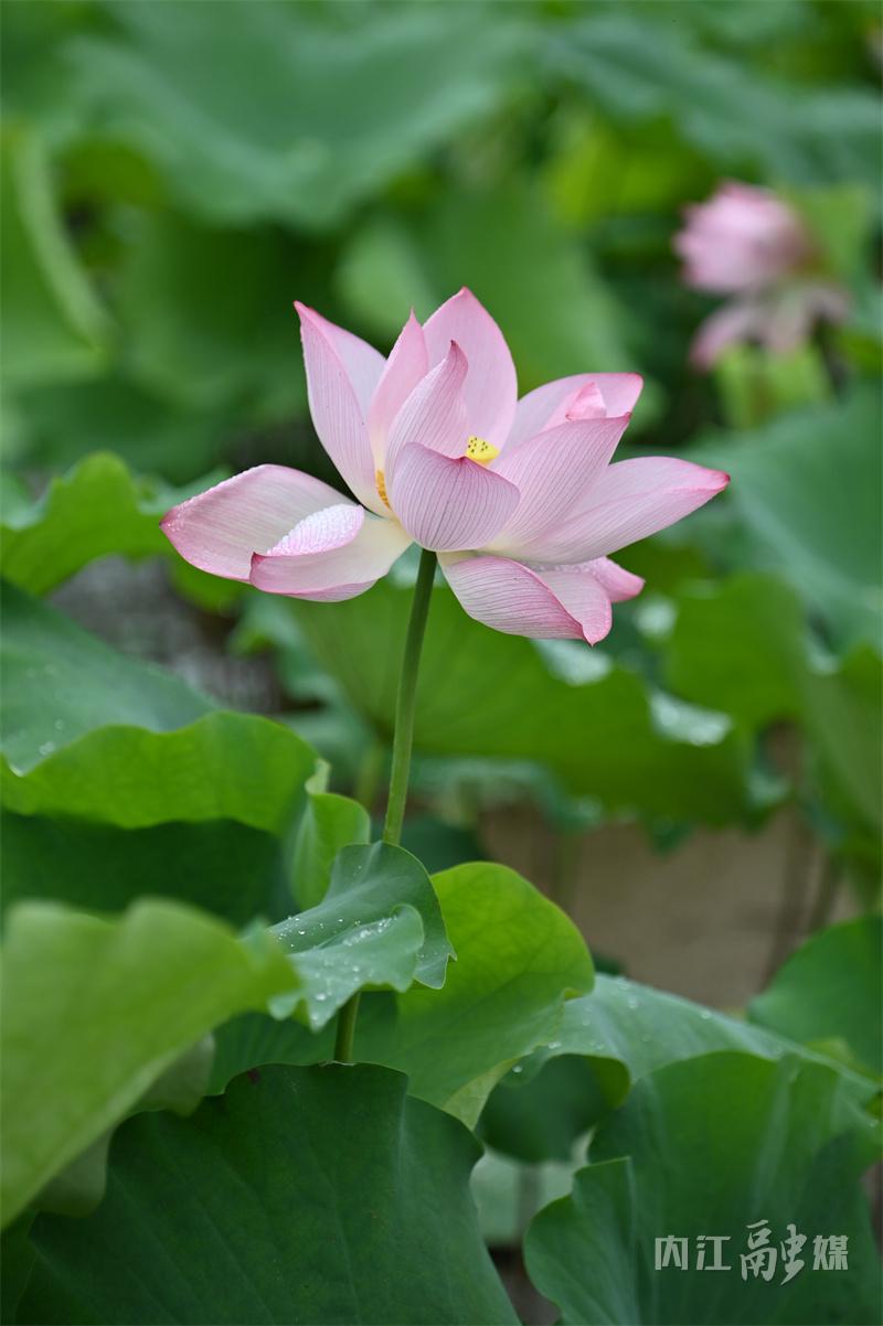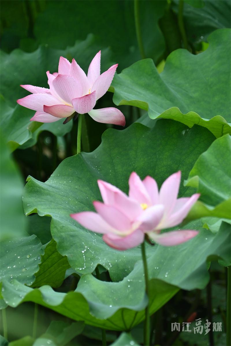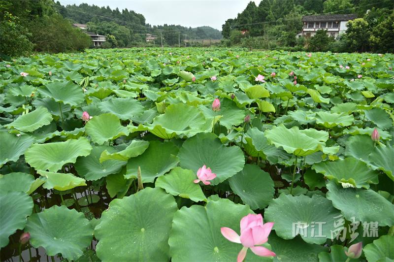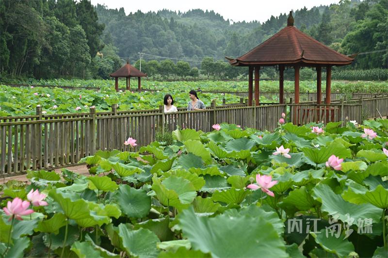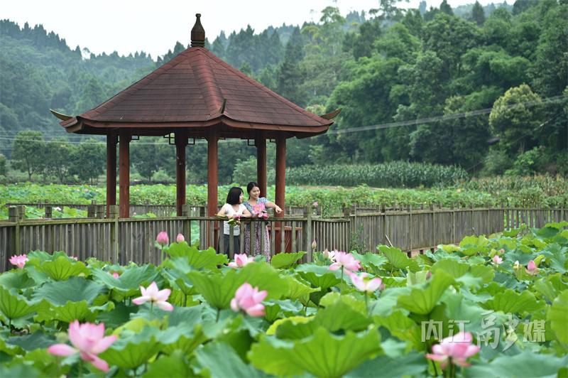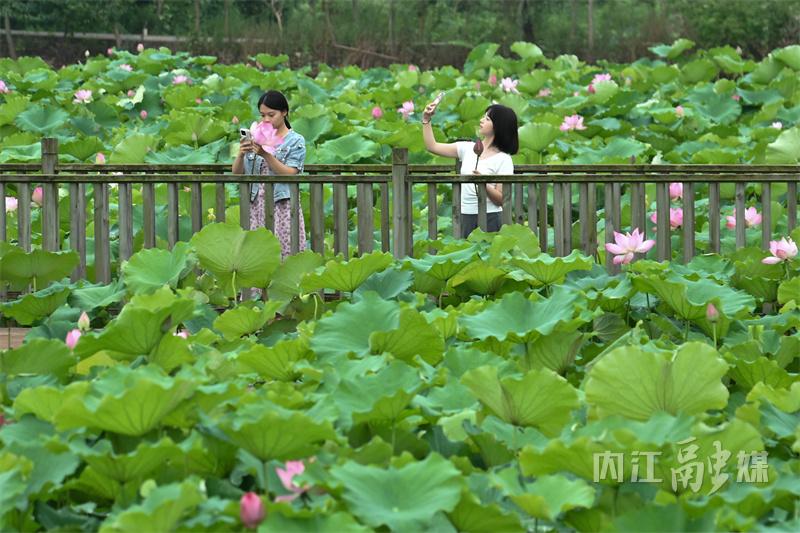 仲夏时节,内江市东兴区高梁镇杨岭村荷花谷百亩荷花竞相绽放,吸引了不少游客前来“打卡”。