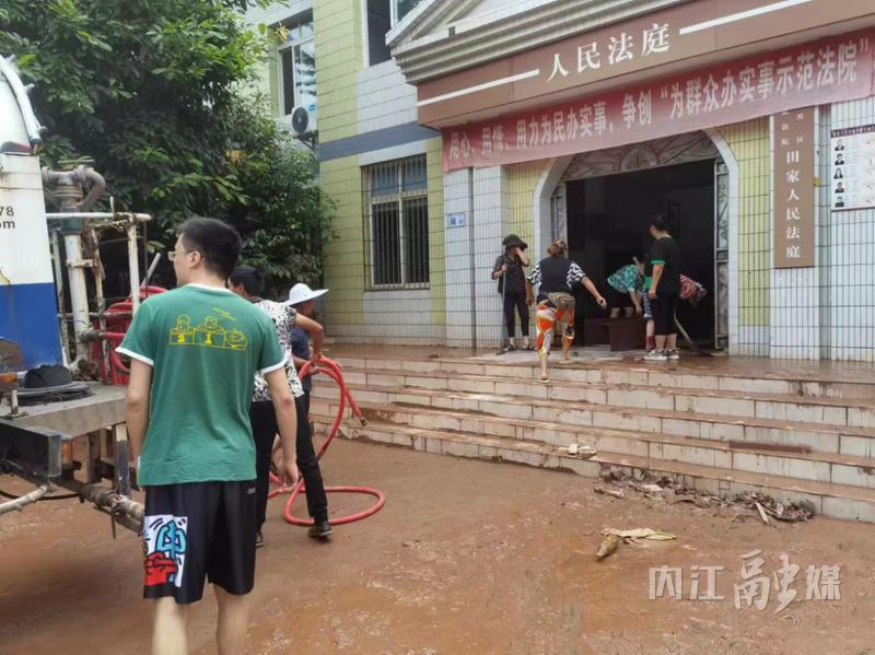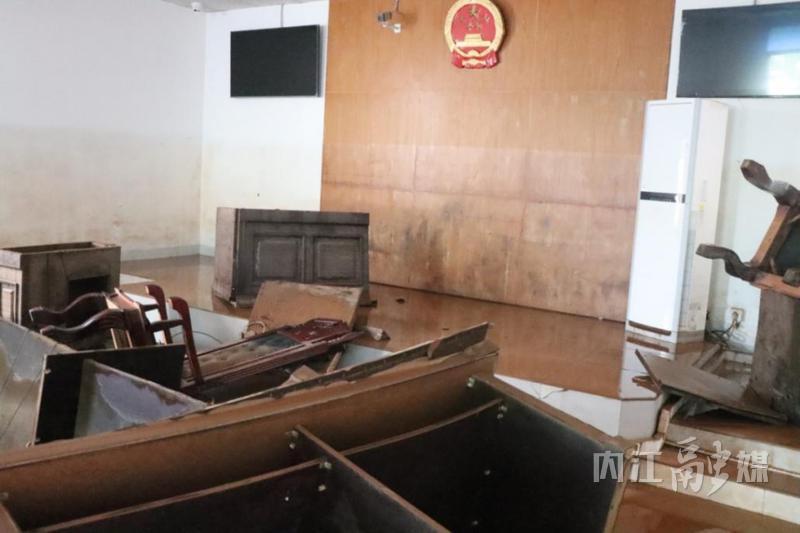 受“7·13”强降雨影响,东兴区人民法院田家法庭一楼完全被淹没,导致淤泥沉积、垃圾遍地,科技法庭、调解室、生活区各项设备设施均被洪水浸泡、冲毁,受灾严重。