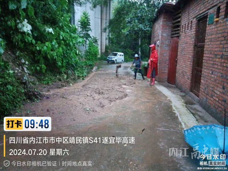 7月20日上午9时许,内江经开区靖民镇田园社区组织人员积极引流,预防山洪、泥石流等地质灾害发生。