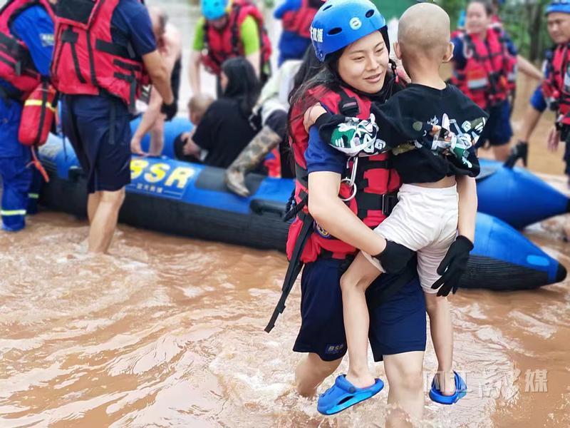 7月13日,内江遭遇特大暴雨,区红十字会闻“汛”行动,成立了市中区红十字蓝天应急救援队,到东兴区田家镇、杨家镇等开展抢险救援工作。