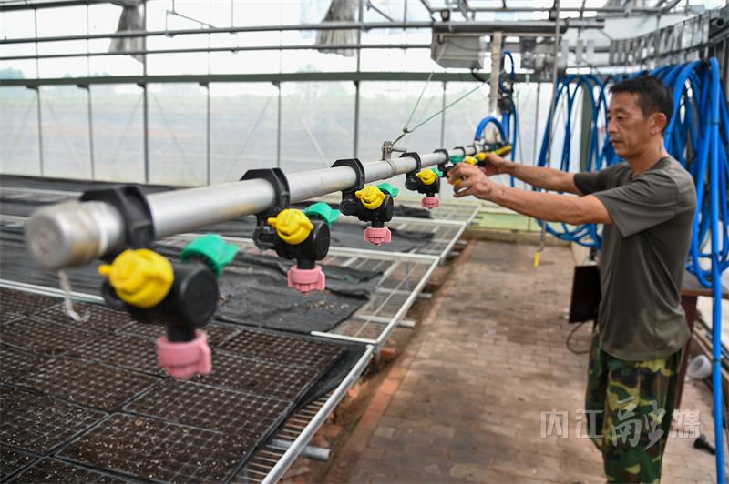 “整个大棚占地约4亩,可以实现全年育苗约300万株。”水口村党总支书记刘念在智能控制柜前操作风扇对大棚进行通风降温,他表示,机械化育苗省时省力,解决了传统育苗出苗时间长、温度湿度难控制、产量不稳定、病虫害侵扰等问题。