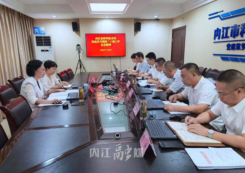 市科学技术局召开会议,专题传达学习党的二十届三中全会精神。会议指出,党的二十届三中全会是在以中国式现代化全面推进强国建设、民族复兴伟业的关键时期,召开的一次十分重要的会议,全会通过的《中共中央关于进一步全面深化改革、推进中国式现代化的决定》,对进一步全面深化改革作出系统部署,具有重要而深远的政治意义、历史意义和时代意义。要提高站位,深刻认识全会的重大意义。要学深悟透,深刻领会全会精神实质。要把学习贯彻全会精神作为当前和今后一个时期的重大政治任务,坚持原原本本学、深入思考学、联系实际学,将学习全会精神与学习贯彻落实全国科技大会精神、习近平总书记来川视察重要指示精神、习近平总书记关于科技创新的重要论述紧密结合起来,有序推进党中央决策部署落地落实。要凝心聚力,扎实推进各项工作。要紧紧围绕建设成渝创新驱动先行市和成渝重大科技成果转化中心目标,主动融入成渝科创走廊建设,自觉把科技改革摆在更加突出的位置,健全科技型企业培育、关键核心技术攻关、科技成果转化、科技创新平台建设等体制机制,落实《“星火燎原”科技创新引领行动方案》,加快培育形成新质生产力,扎实推进高质量发展,为加快建设成渝发展主轴产业强市和区域物流枢纽、全面建设社会主义现代化内江作出科技贡献。