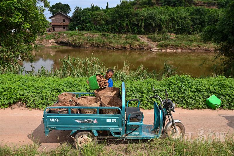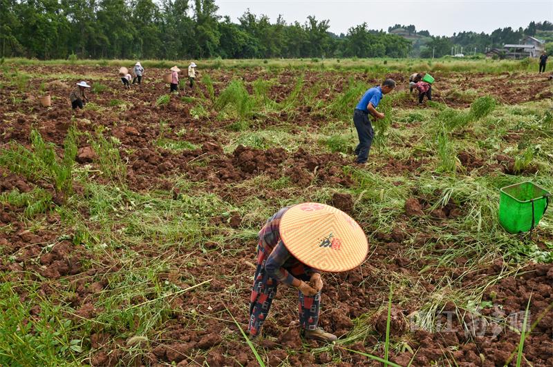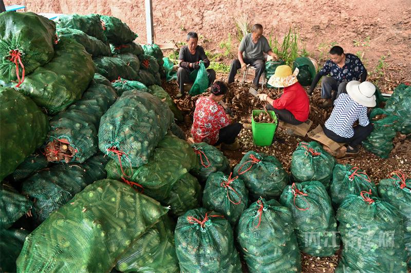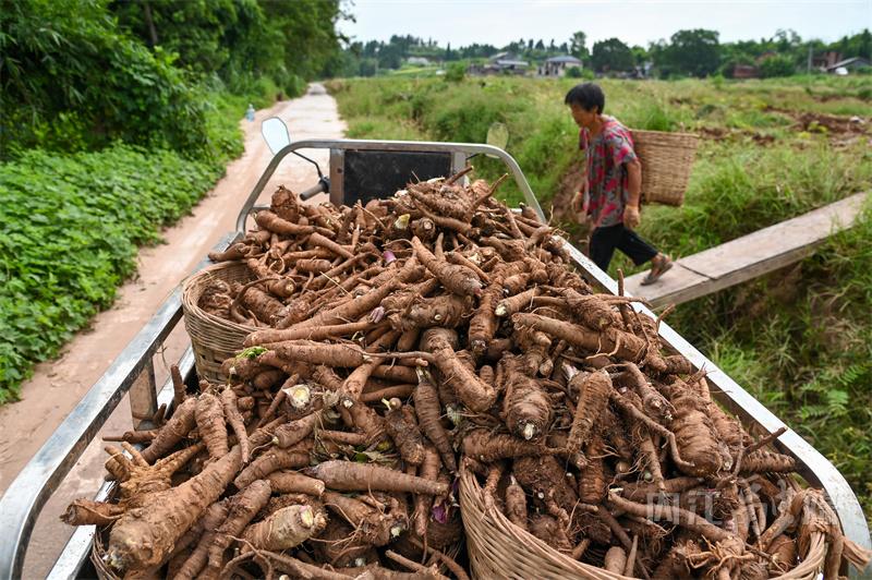 连日来,内江市东兴区平坦镇水梨村种植的白芷迎来丰收。采收、修剪、打包、装车,7月30日,村民采收白芷及时供应中药材市场。