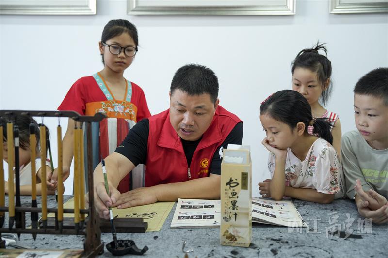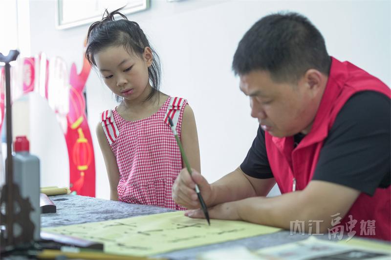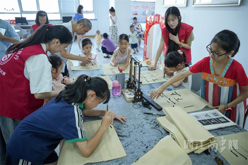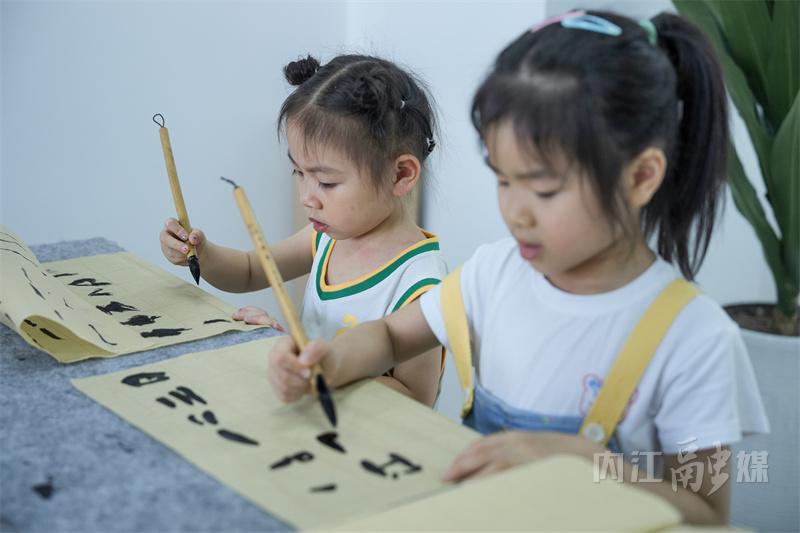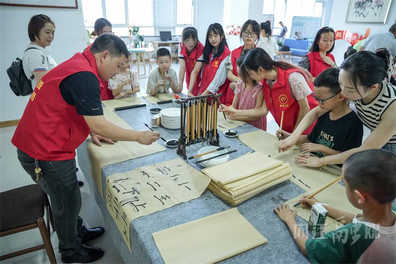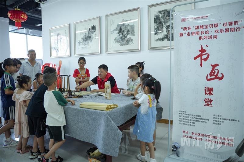 8月1日,2024年“我在甜城宝贝屋”过暑假暨“走进图书馆 欢乐暑期行”暑期少儿系列文明实践活动之“书法课堂”在东兴区图书馆举行。