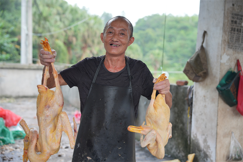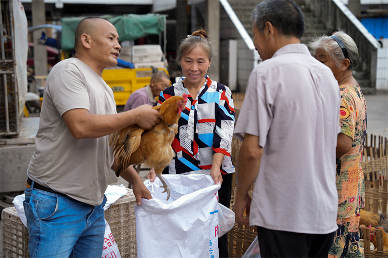 赶场,既连着生活,又连着生计。“5块钱一只,快得话几分钟弄好一个”,59岁的马文芝与丈夫正在娴熟地“打整”鸭子,马文芝是龙门镇本地人,每当逢场天,夫妻两人三四点便到菜市场,开始一天的劳作。马文芝说,干这行已有20多年,生意好时,一天可“打整”七八十只鸭子,日子一天天好了起来。