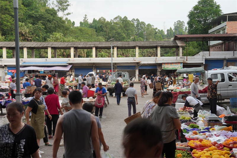 然而,当转身步入新街,眼前的景象却豁然开朗,仿佛“穿越”到了另一个世界。这天,是龙门镇逢场的日子。赶场,是村民的专属“仪式感”。菜市场里人声鼎沸,热闹非凡。各式各样的摊位琳琅满目,色彩斑斓的蔬菜瓜果、传统古老的采耳理发……叫卖声、寒暄声交织在一起,热情、乡情汇成一片,构成了一幅生动而鲜活的生活画卷。