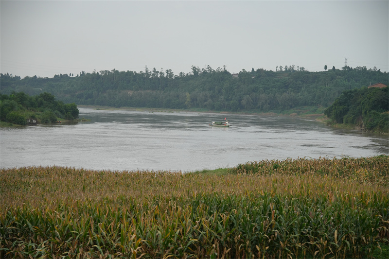 清晨,微风轻拂岸边树叶,一缕阳光映着悠悠沱江水,船舶在江中缓缓前进。