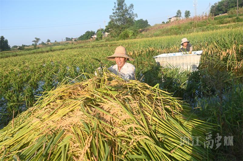 8月7日是二十四节气中的立秋。内江市隆昌胡家镇稻虾共作模式下的水稻和龙虾均迎来丰收。农民们抢抓农时收割水稻、捕捞龙虾,田间地头一派繁忙景象。