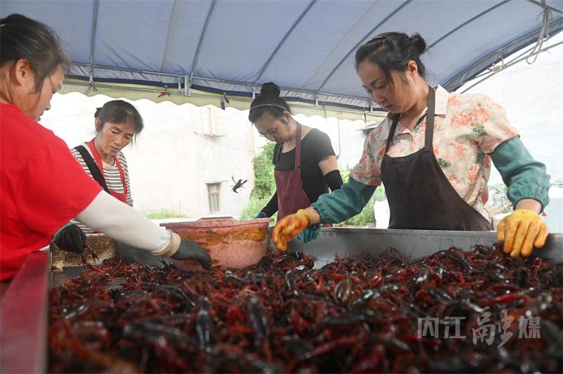 早上6时30分,记者来到位于隆昌市胡家镇同心村的小龙虾收购点看到,村民们正忙着分拣小龙虾,不同大小的小龙虾分类统一装箱打包后将发往成渝两地。