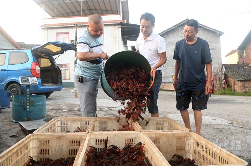 “这段时间每天都收购两三千斤,目前大虾要卖30多元一斤,中虾20多元。”收购点周宾介绍,他在周边收购的小龙虾都是稻虾,相比一般的小龙虾要多卖一两块一斤,因为通过稻虾共作养殖的小龙虾肉质更好,口感也更好,也深受外地客商的青睐。