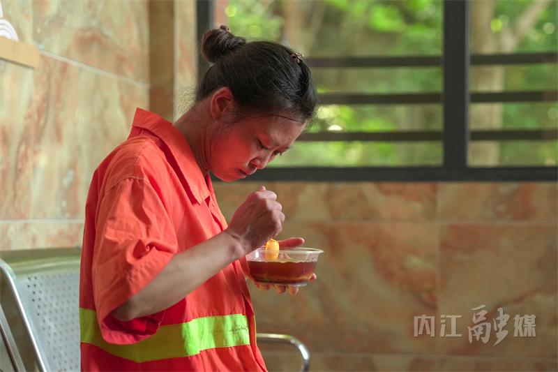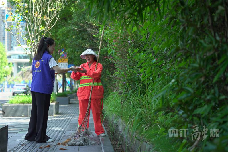 “你们辛苦了!感谢你们为内江的美丽付出的努力!”活动现场,工作人员将消暑食品送到每一位环卫工人手中。一句句贴心的问候,让环卫工们的脸上洋溢出暖心的笑容。