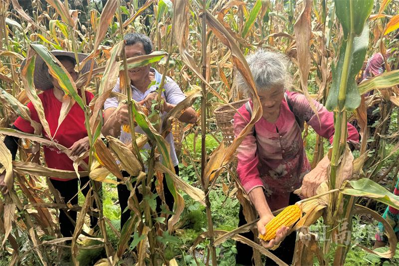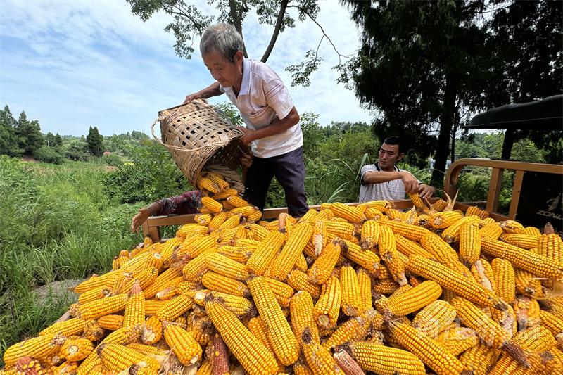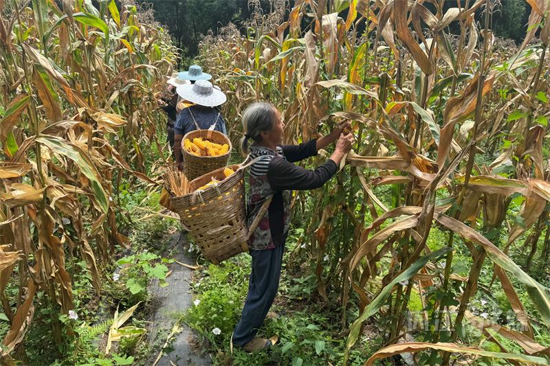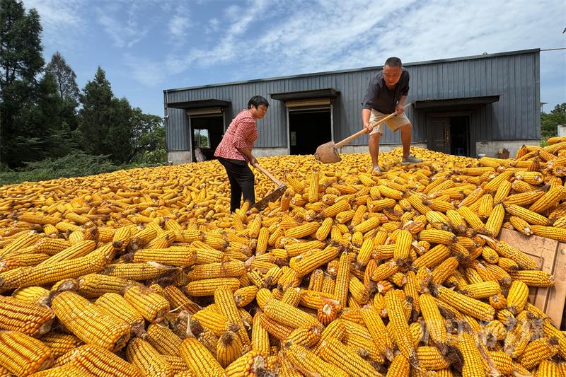 立秋过后,观音井村通过粮经复合种植模式套种的玉米迎来收获期,当地村民们抢抓晴好天气忙着采收和晾晒,确保颗粒归仓。