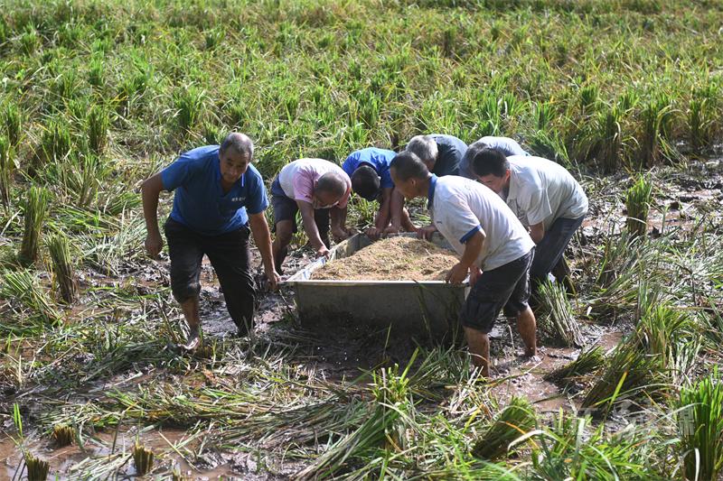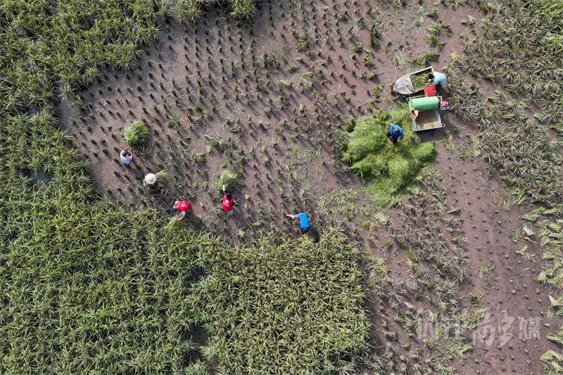 抢收现场,大家分工明确,有的负责操作收割水稻,有的负责搬运稻谷,有的负责脱粒,还有的负责转运、晾晒,确保每一粒稻谷都能颗粒归仓。