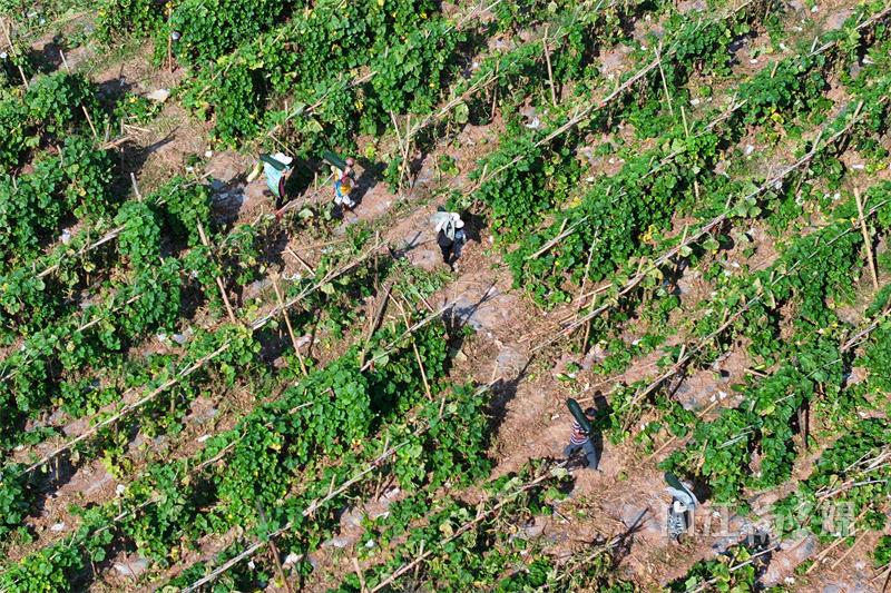 “从一周前就开始采收了,预计还有半个月就可以采收完成。今年预计总产量接近200吨,总产值约40万元。”种植基地负责人曹伟是本地人,去年他返乡创业流转土地干起了特色种植,带动周边村民在基地内参与种植管理,实现家门口就近务农增收。
