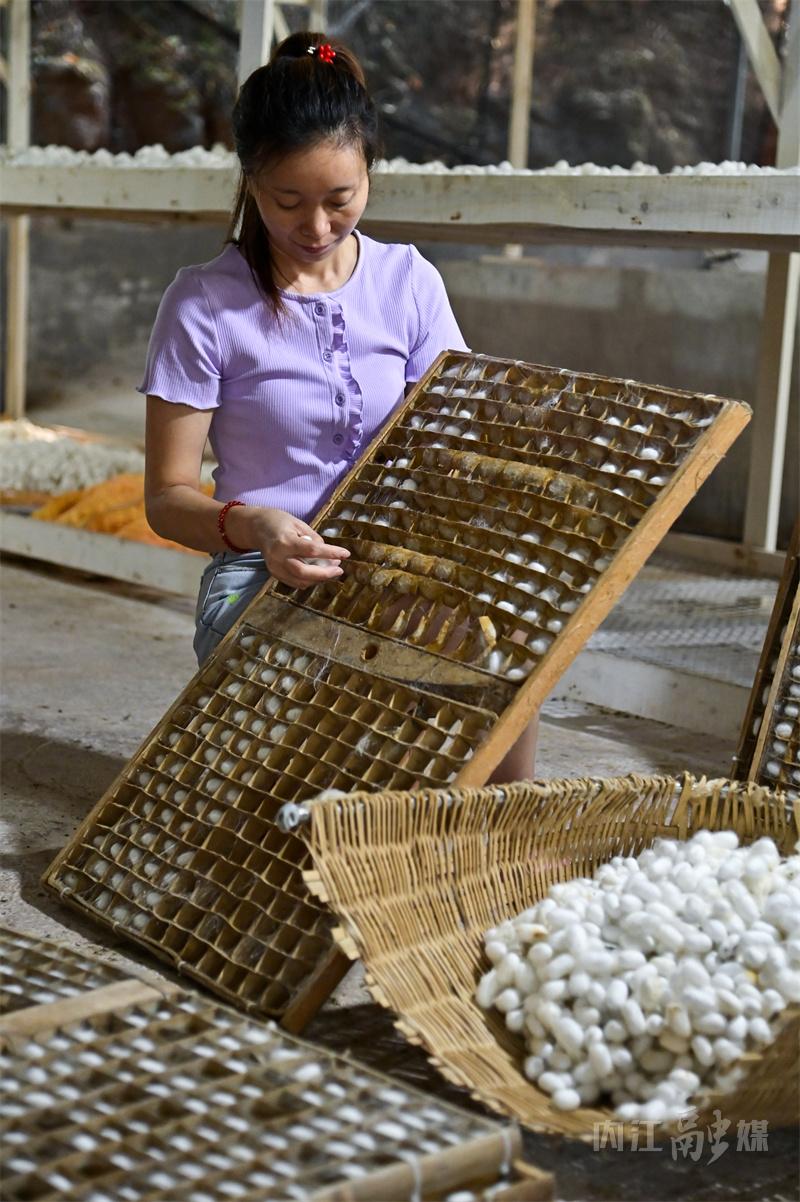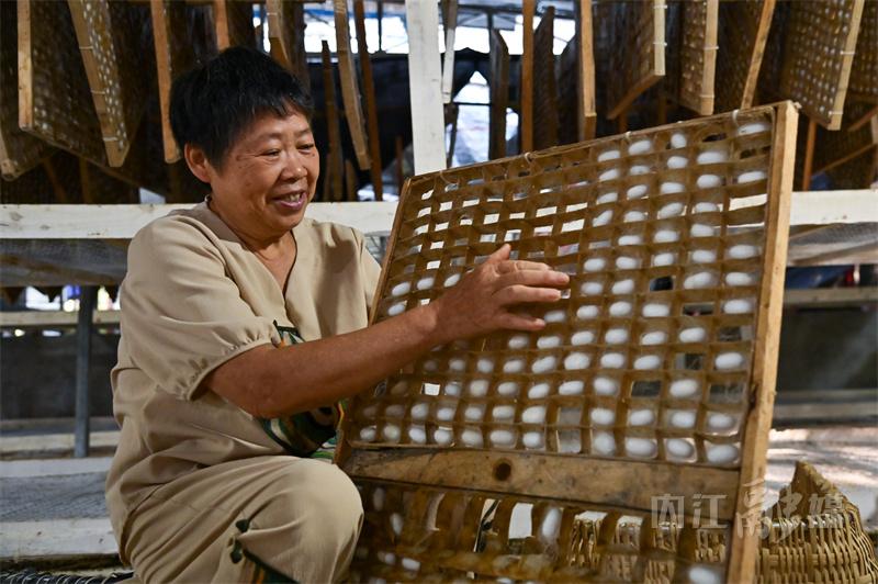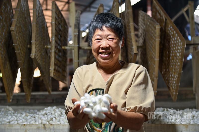 据了解,内江市东兴区有着悠久的桑蚕养殖传统,是“全国优质蚕茧基地县”。依托当地资源优势和环境特点,东兴区把发展蚕桑产业与推动乡村振兴相结合,通过“龙头企业+合作社+基地+农户”的模式,大力发展蚕桑产业,带动群众栽桑养蚕增收致富。