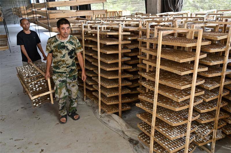 记者随后走进双流村东兴区贾伟桑蚕药材家庭农场、顺河镇冷家村东兴区吕林江蚕桑养殖家庭农场,在宽敞的蚕棚中,方格簇有序排列,蚕农正忙碌采摘着蚕茧。