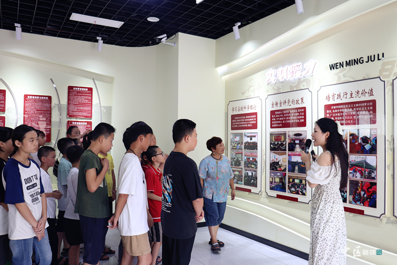 在讲解员的带领下,师生们参观了中心的各个展示区。讲解员用生动的语言和问答的形式,将展示区丰富的文字和图片等资料讲述给大家,让参观人员深切感受到了榜样的力量,以及新时代文明实践中心在服务群众等方面起到的重要作用。