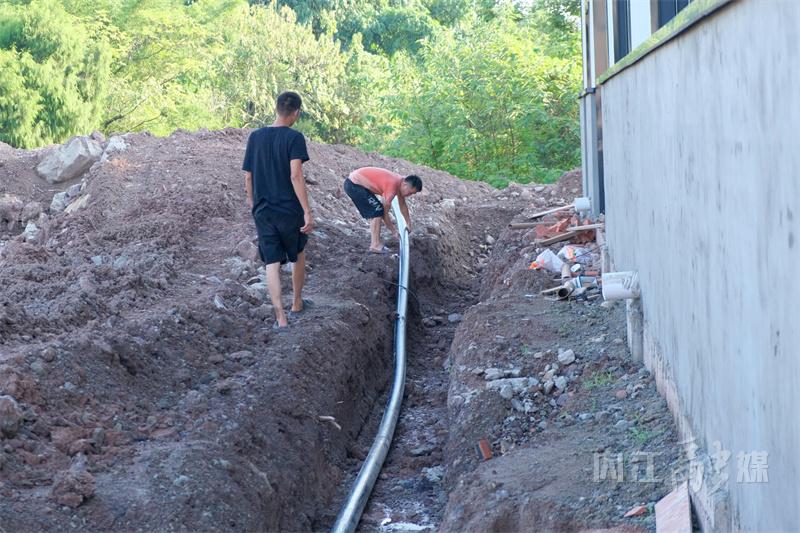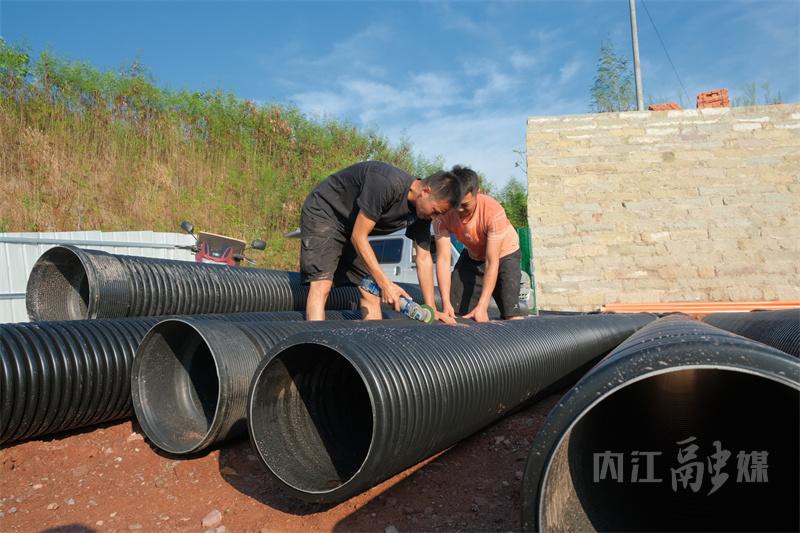 9月12日,内江市东兴区郭北镇郭家村,施工人员在埋设管道。