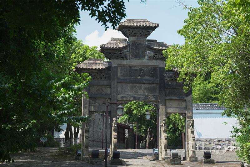 牌坊两侧,是青砖灰瓦的仿古建筑,中间一条青石板路蜿蜒向前。漫步古道,穿梭牌坊群之间,感受一座座牌坊背后一段段鲜活的历史。