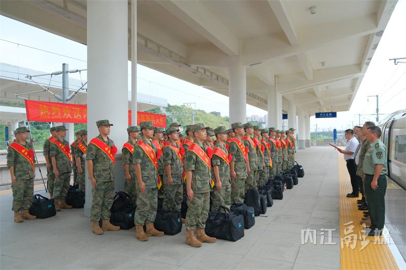9月20日,内江高铁北站站台,一场庄重而热烈的新兵欢送仪式正在举行。这标志着内江市2024年下半年新兵入伍工作正式启动。随着首批新兵身着崭新的军装,胸戴大红花,踏上前往军营的列车,他们的军旅生涯也正式拉开序幕。