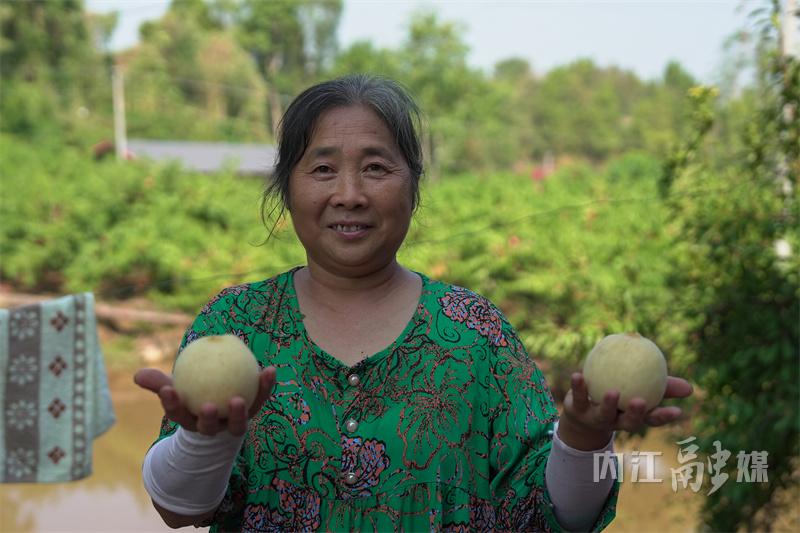 58岁的工人郑中英家住慈花村4组,当天,她正在果园基地的院坝里忙着将蜜桃进行打包装箱,她告诉记者:“在这里干活六七年了,平均一天有一百多的收入,好的时候还有两三百呢!”