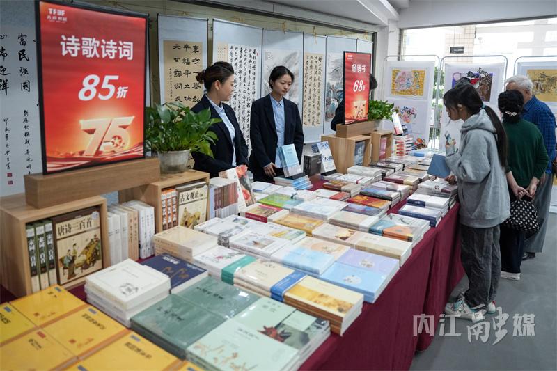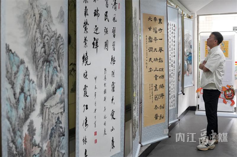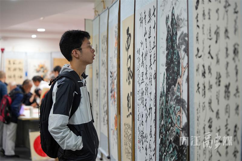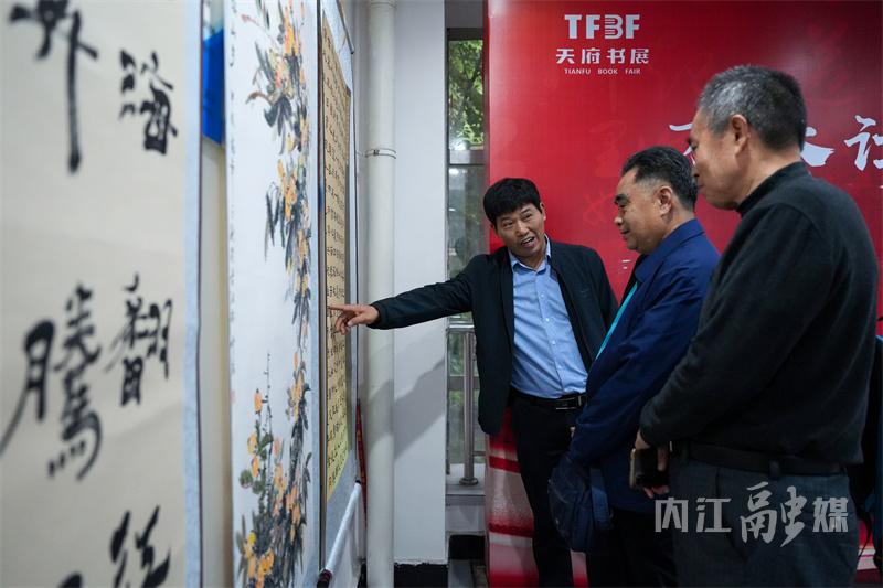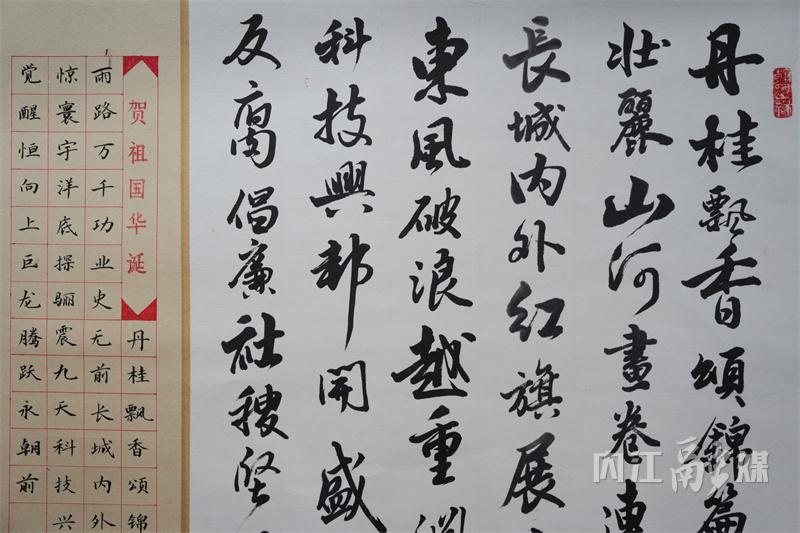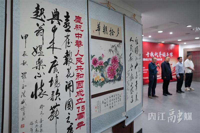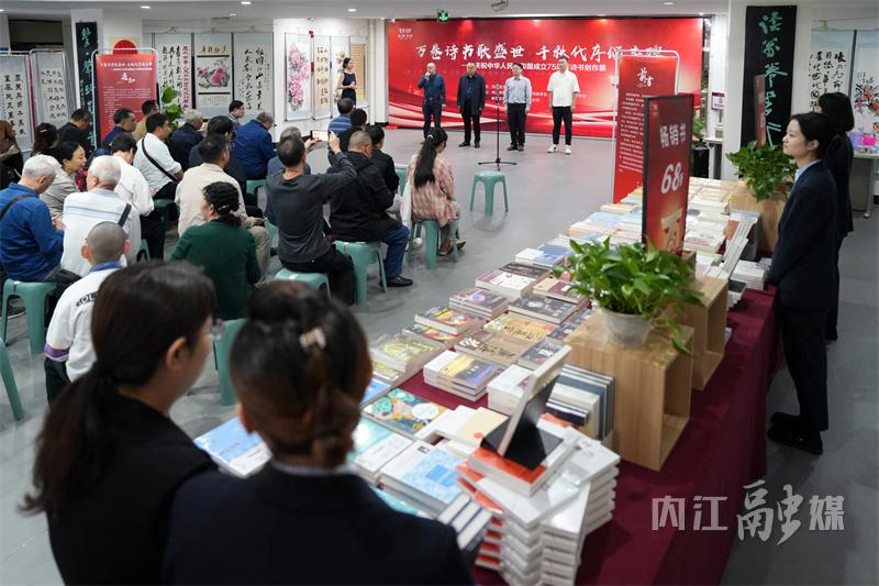 10月1日,国庆节,内江市图书馆举办“万卷诗书歌盛世,千秋代序颂丰碑”庆祝中华人民共和国成立75周年诗书创作展,吸引了众多书画界人士及读者参与。