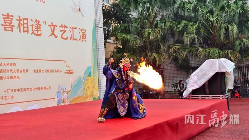 上午9时20分,演出在舞蹈《藏族节日歌》中热闹开场,男声独唱《两地曲》、川剧绝活变脸喷火、小品《夕阳红》、朗诵《岁岁重阳,今又重阳》等节目轮番上阵,欢歌乐舞,高潮迭起,为凌家镇中心敬老院、凌家镇伏龙敬老院的老人们送上了一场精彩的“文化盛宴”。