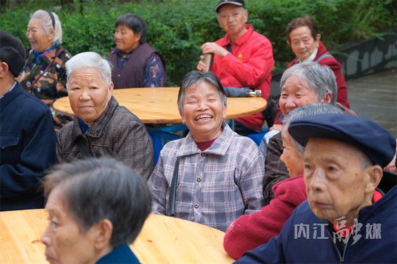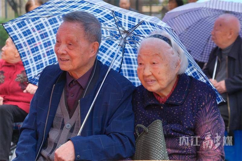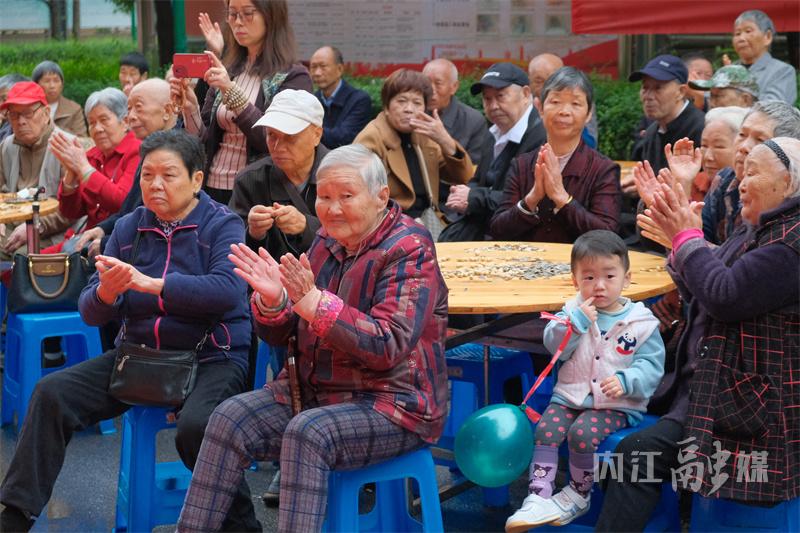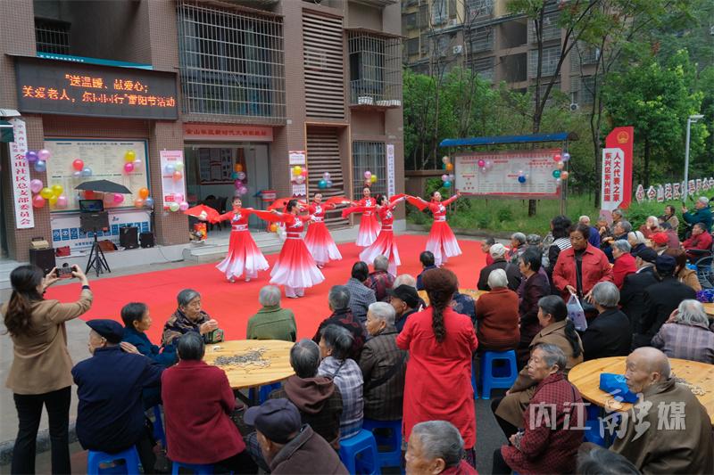 10月11日,在内江市东兴区东兴街道金山社区,老人们在观看重阳节主题活动演出。