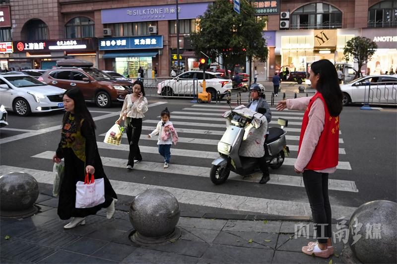 内江建工集团公司志愿者赵璠琦感慨:“我们充分发挥国有企业职工先锋示范作用,积极劝阻不文明行为,引导和提醒路人不闯红灯,不乱扔垃圾,文明使用共享单车,主动清理宠物粪便等,用一言一行传播文明理念。”